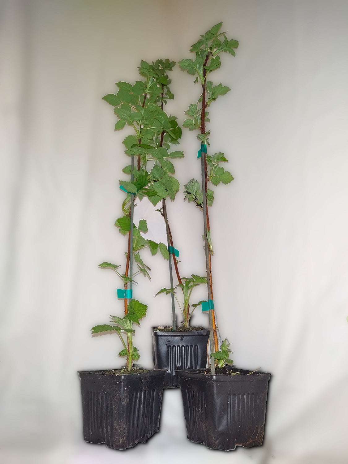 The last photo is an example of a 4” container Coho Red Raspberry, however, it is not the exact plant that you will receive. Our plants are containerized and not bare root.